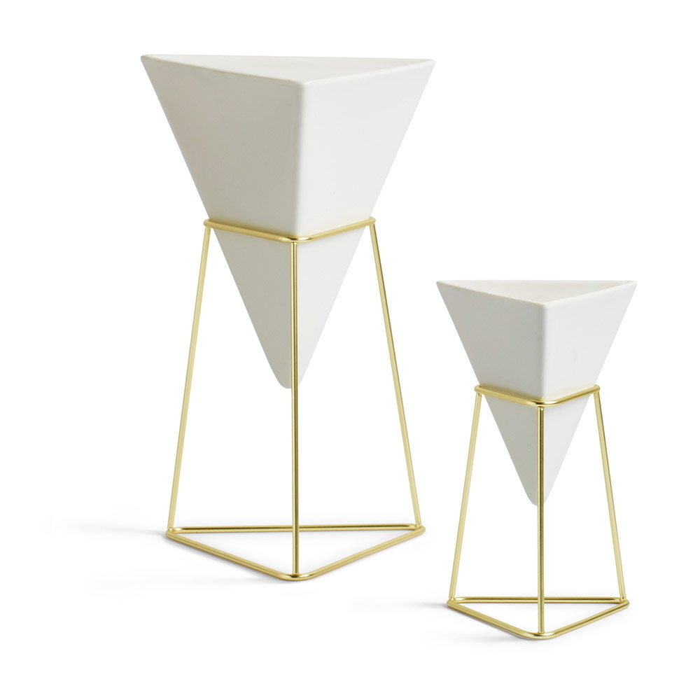 Два настольных керамических кашпо на металлических подставках. Кашпо подойдут для комнатных растений, цветов, канцелярских принадлежностей, хранения мелочей, а также будут стильным предметом интерьера офиса или квартиры.
